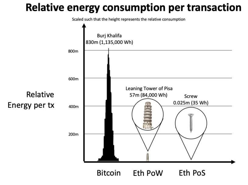 In the case of POW, nodes are competing among themselves with sheer computational power and electricity to find the hash. In Proof of Stake (POS), the nodes will need to stake 32 Ether (in the case of ETH 2.0). Among other criteria, the network will choose who will be the validator (validate transactions and add the block to the blockchain). One of the significant advantages of POS (ETH 2.0) over POW (ETH 1.0) is that it eliminates nearly 99.95% of energy consumption.