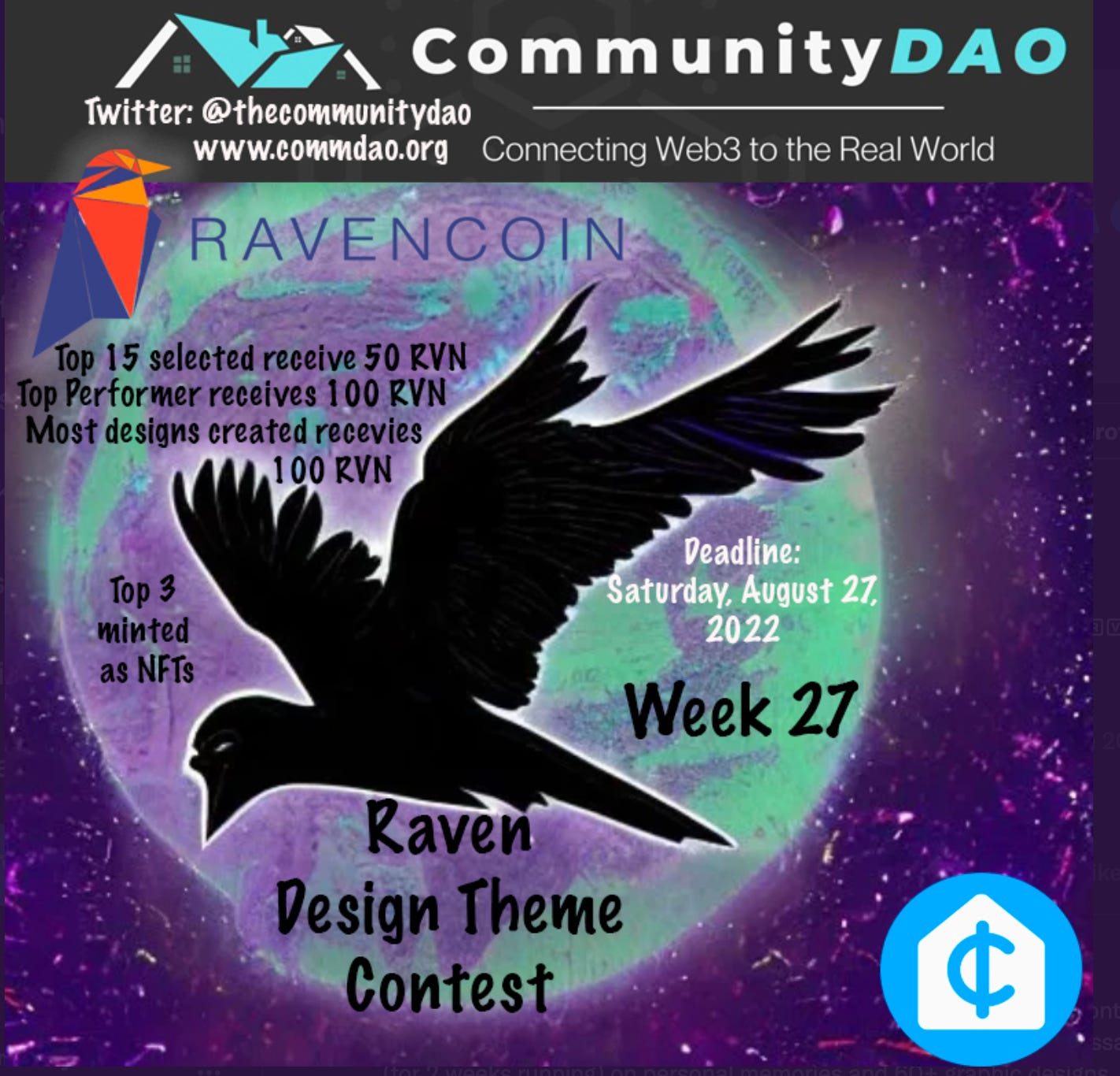 A gigantic flock of ravens flew up and out of Africa this week at Community DAO!!! Increasing focus turns towards refining our structures for incentivizing participation and scoring engagement with our content creators. More time is spent handling, curating, editing, and moderating incredible work efforts from individuals who show they are quite passionate about our organization and making it a success by spreading the word, and creating designs and writings on rotating themes, week by week.
