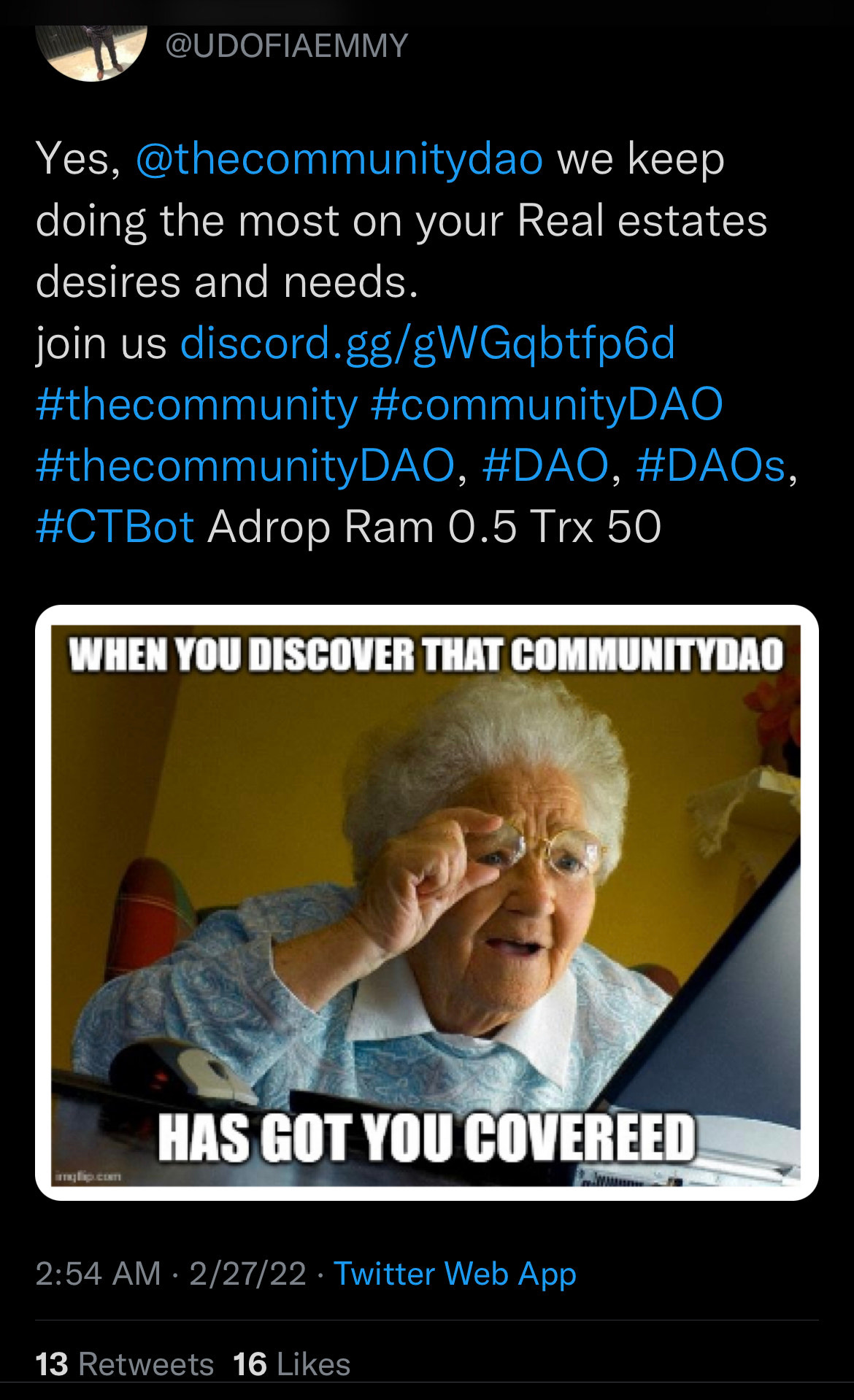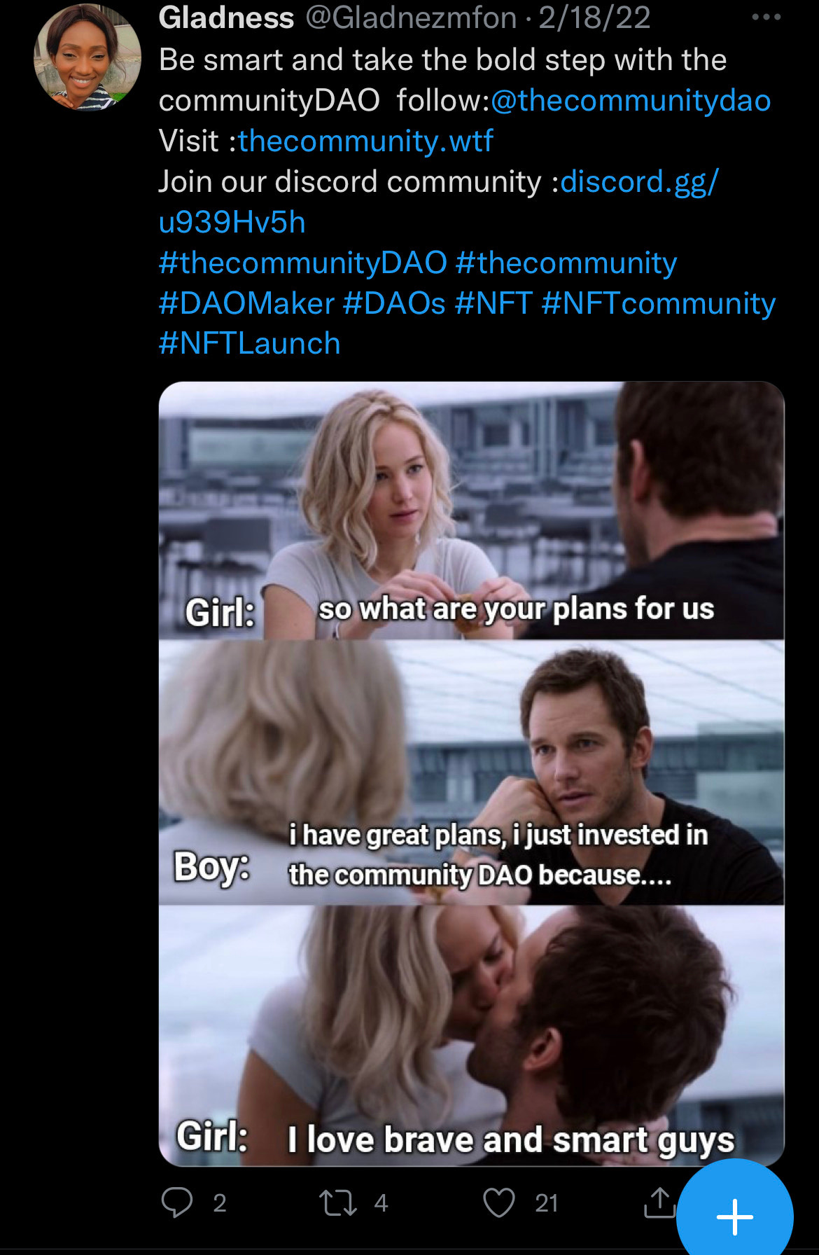 As we look forward for the better days in The Community DAO, the ambassadors, whose job is aimed at bringing in new members from all aspects of life to our discord server, following up and promoting our project through our social media handles.